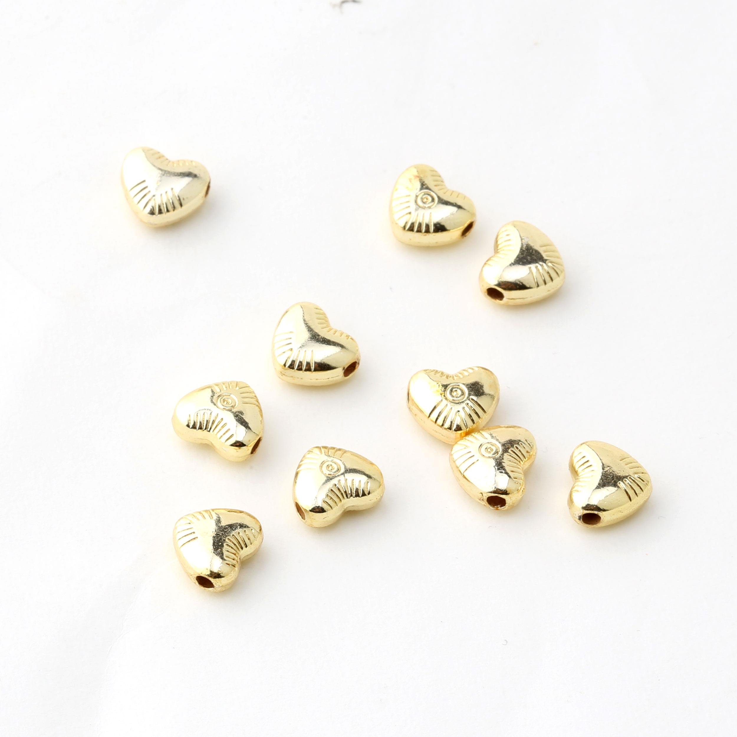Yaklaşık 1 cm boyutunda, 5 mm kalınlığında desenli kalp metal takı boncuğu. Bileklik, kolye vb. takı tasarımlarında kullanabilirsiniz.