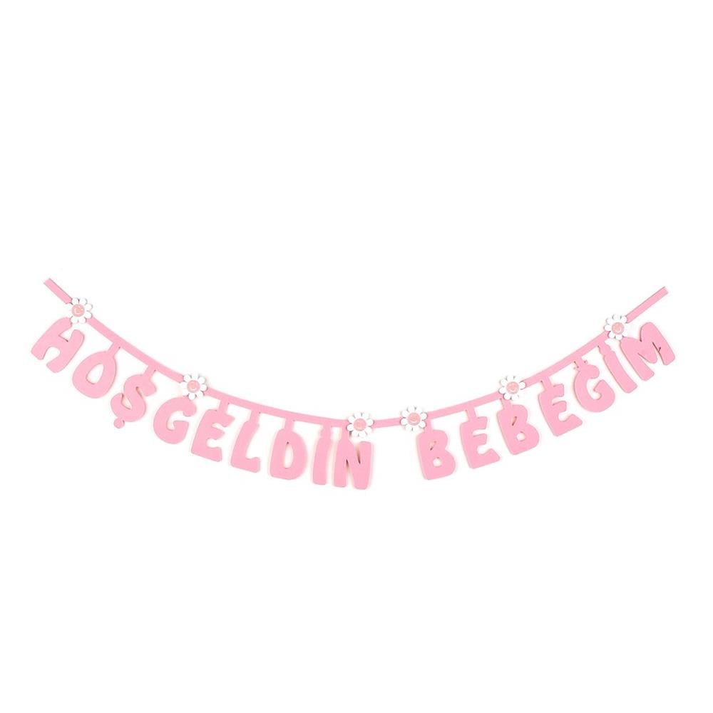 3 mm kalınlığında keçeden yapılmış "hoşgeldin bebeğim" yazılı askı.